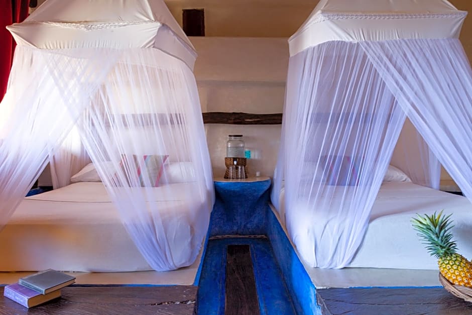 This 2-level suite is located at the beachfront, and has 2 bedrooms, each with a queen-size bed, direct access to the beach and a large private bathroom.